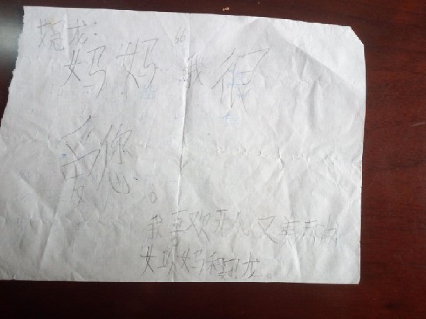 当天傍晚,小艾像往常一样回家后,看见桌子上有两张分别特别标注了“娟留”和“妈妈留”的字条,他木然了!回过神来后,他发现其中一张写满了正反两面,是留给他的,另一张是留给两个儿子的。